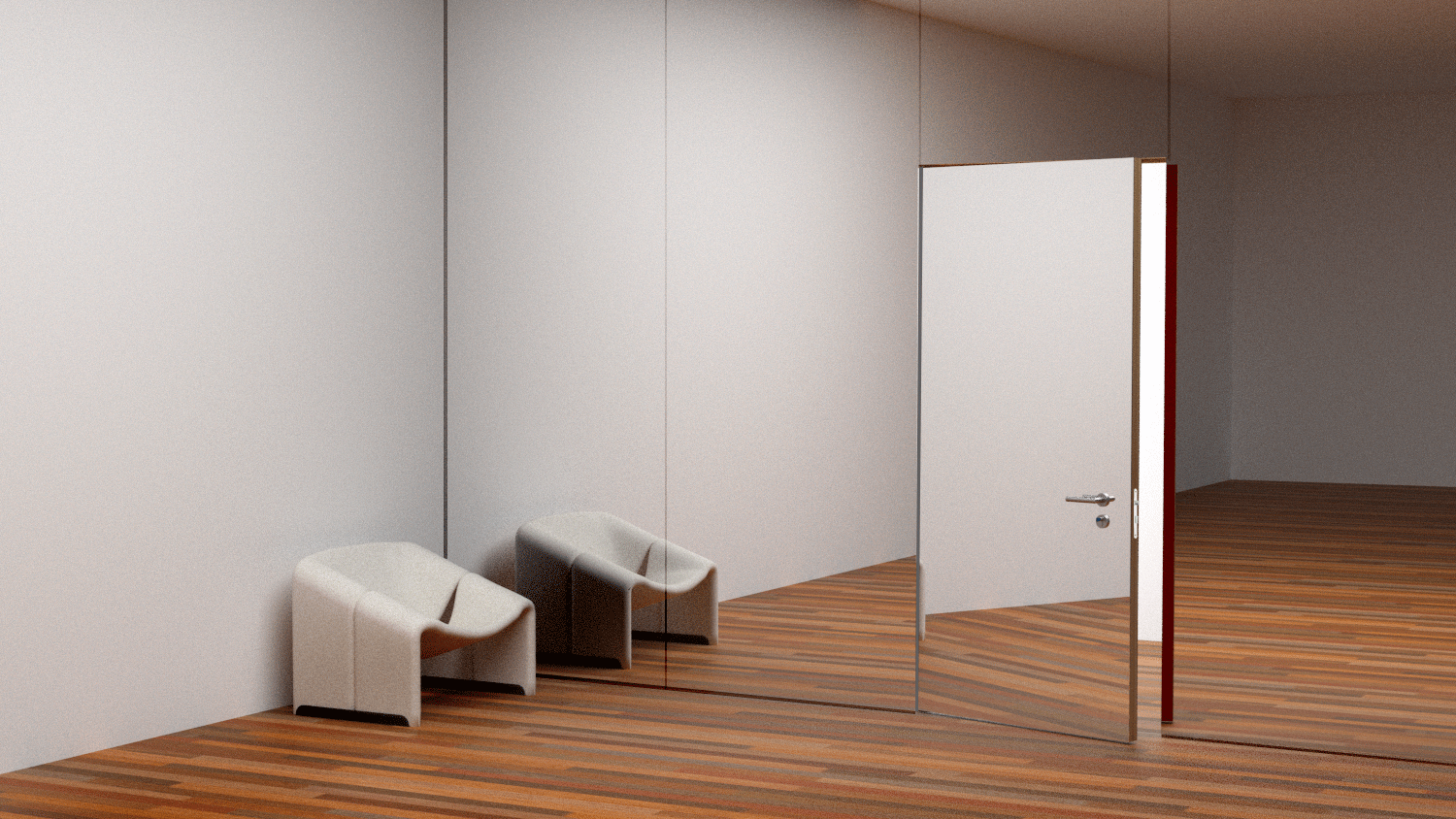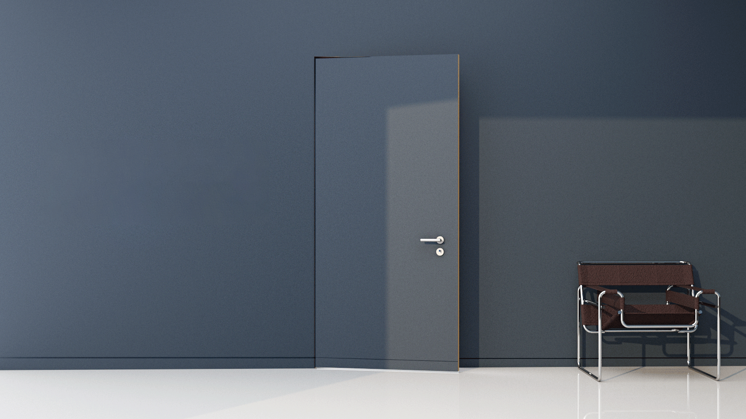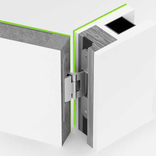 *La conception de la porte invisible varie selon la mise en œuvre de l'habillage. Dans le cas où l'habillage se trouve du coté opposé à l'ouverture, il n'est pas forcément nécessaire de mettre de charnières invisibles, c'est pourquoi le sens de l'habillage doit être communiqué lors de votre demande de prix. Idem pour le ferme-porte encastré qui peut dans certains cas être remplacé par un ferme-porte à glissière classique.