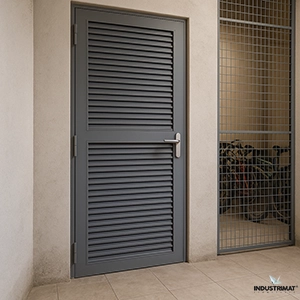 Spécialement conçue pour les locaux nécessitant une ventilation permanente, notre porte à ventelles est conçue en profil Forster Presto et grilles jalousies composées de chevrons. Fabriquées sur mesure, cette porte métallique s'adapte parfaitement à votre cahier des charges, répondant ainsi à toutes vos exigences en termes d'esthétique ou de sécurité.
